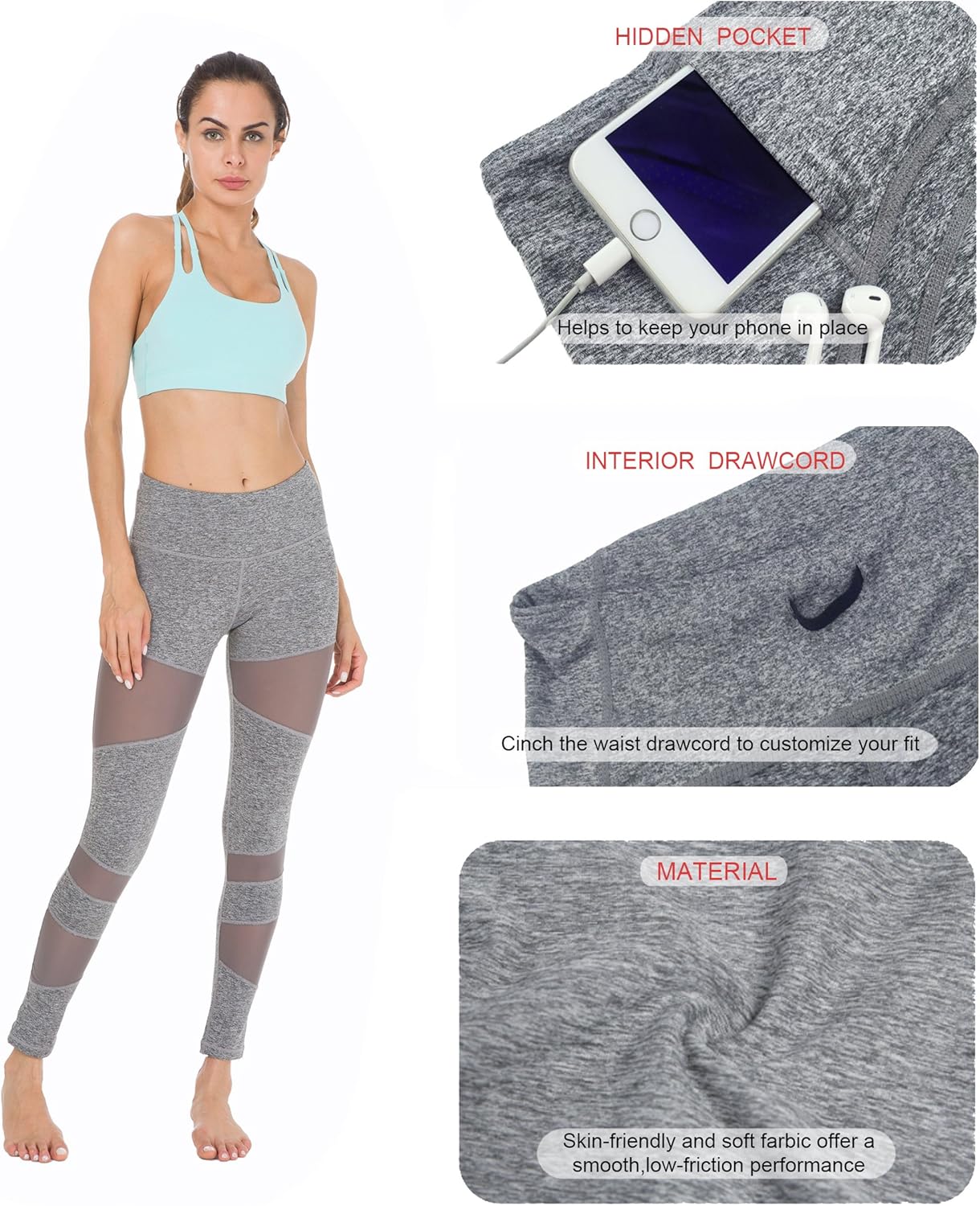 Amazon queenie ke leggings clearance, Queenie Ke Women Power Tech Mesh Mid-Waist Gym Yoga Leggings Running Pants Size XL Color Grey clearance