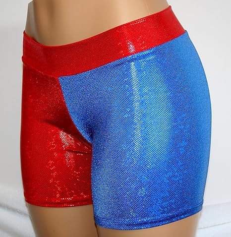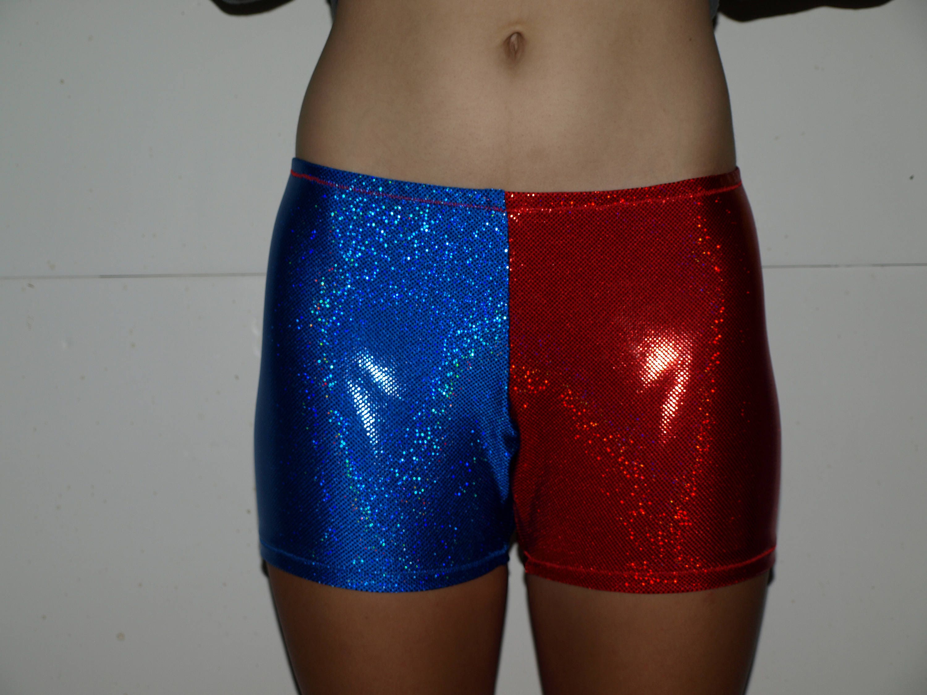 Red and blue spandex shorts clearance, blue holographic spandex shorts | Etsy clearance