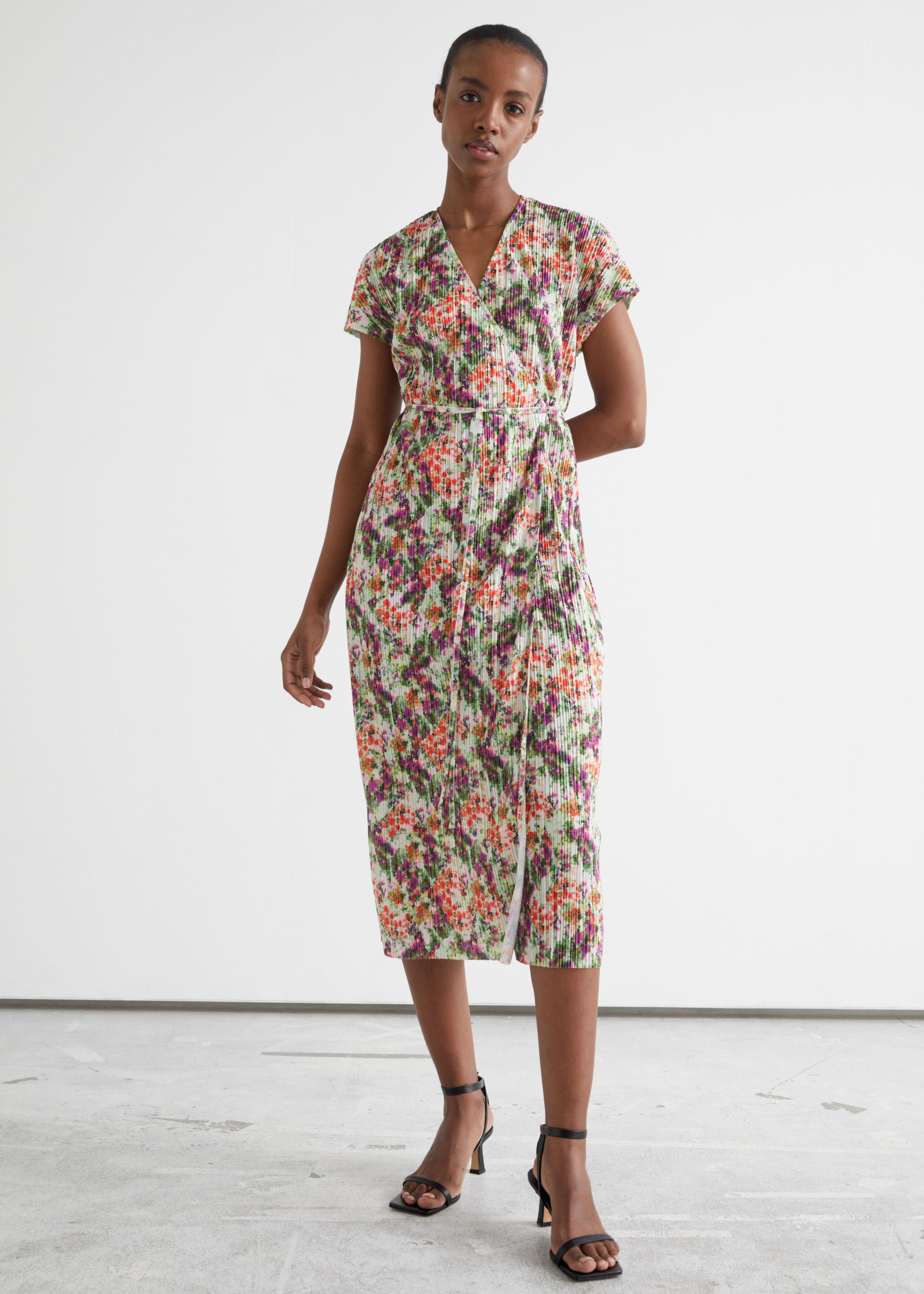 - Sleeveless midi wrap dress