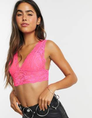 Neon pink lace bra clearance