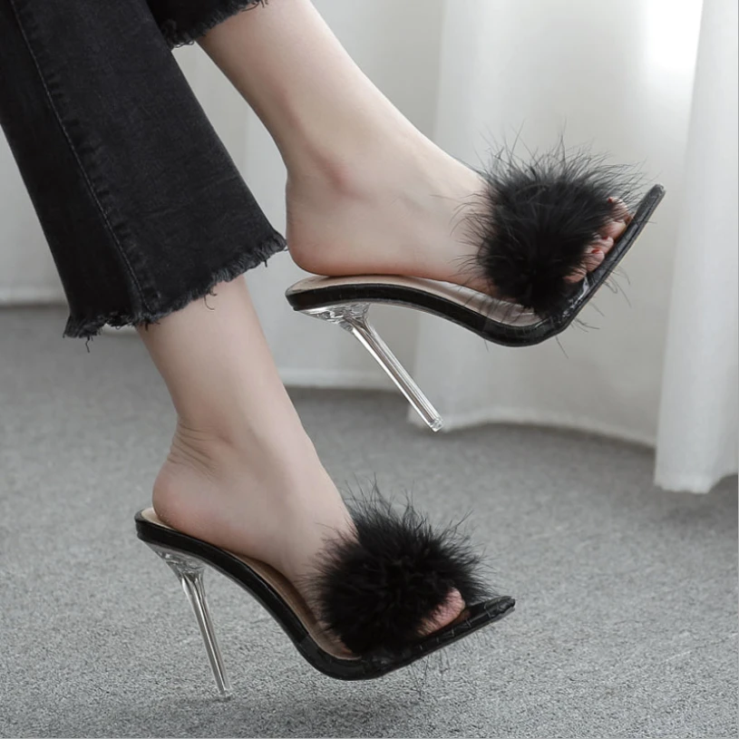 Fur mule heels clearance
