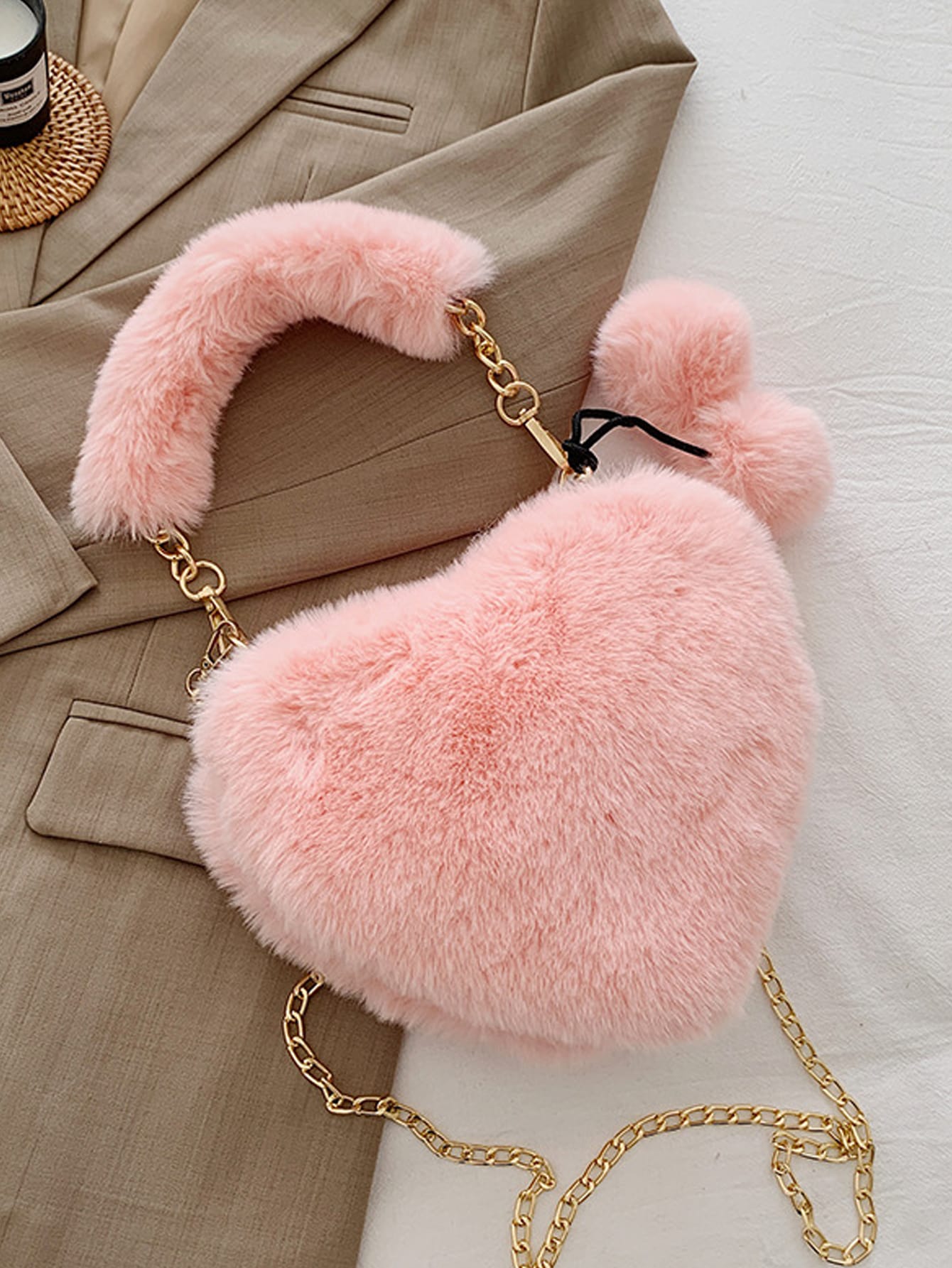 Fluffy heart bag clearance, Heart Shaped Fluffy Chain Bag | SHEIN clearance