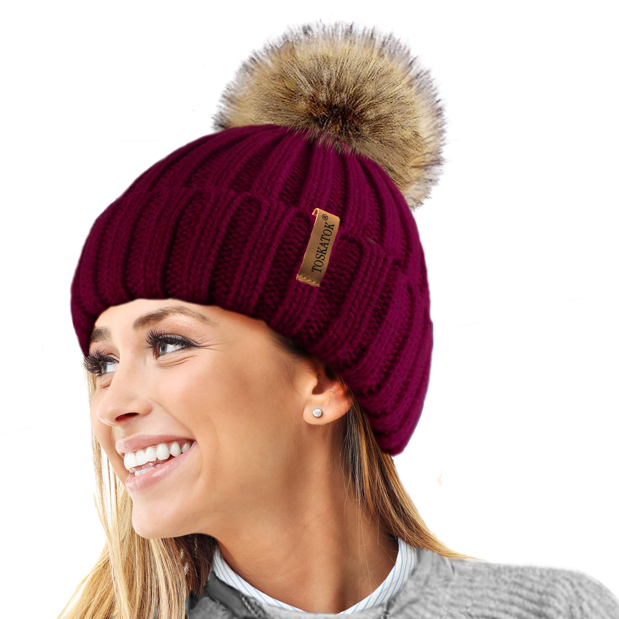 Detachable bobble hat clearance, Womens Winter Rib Knitted Hat/Beanie clearance