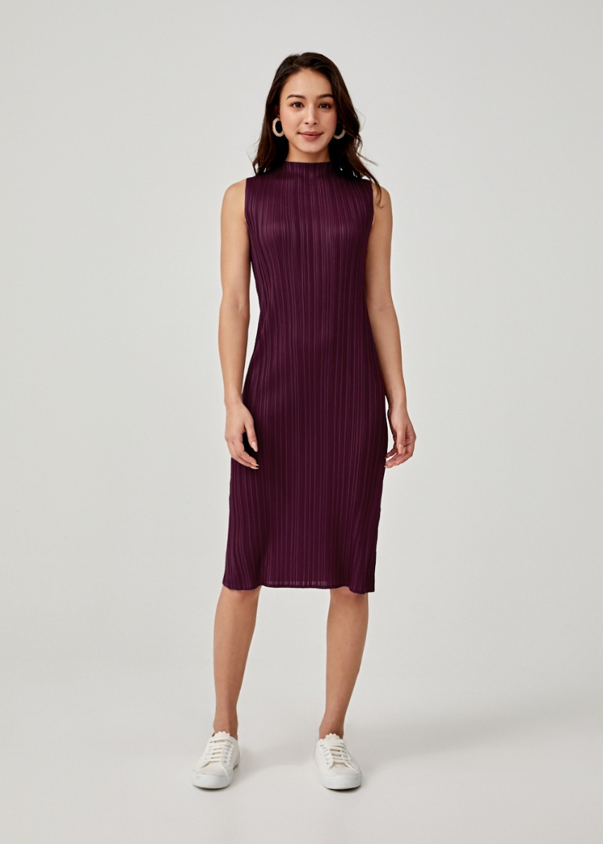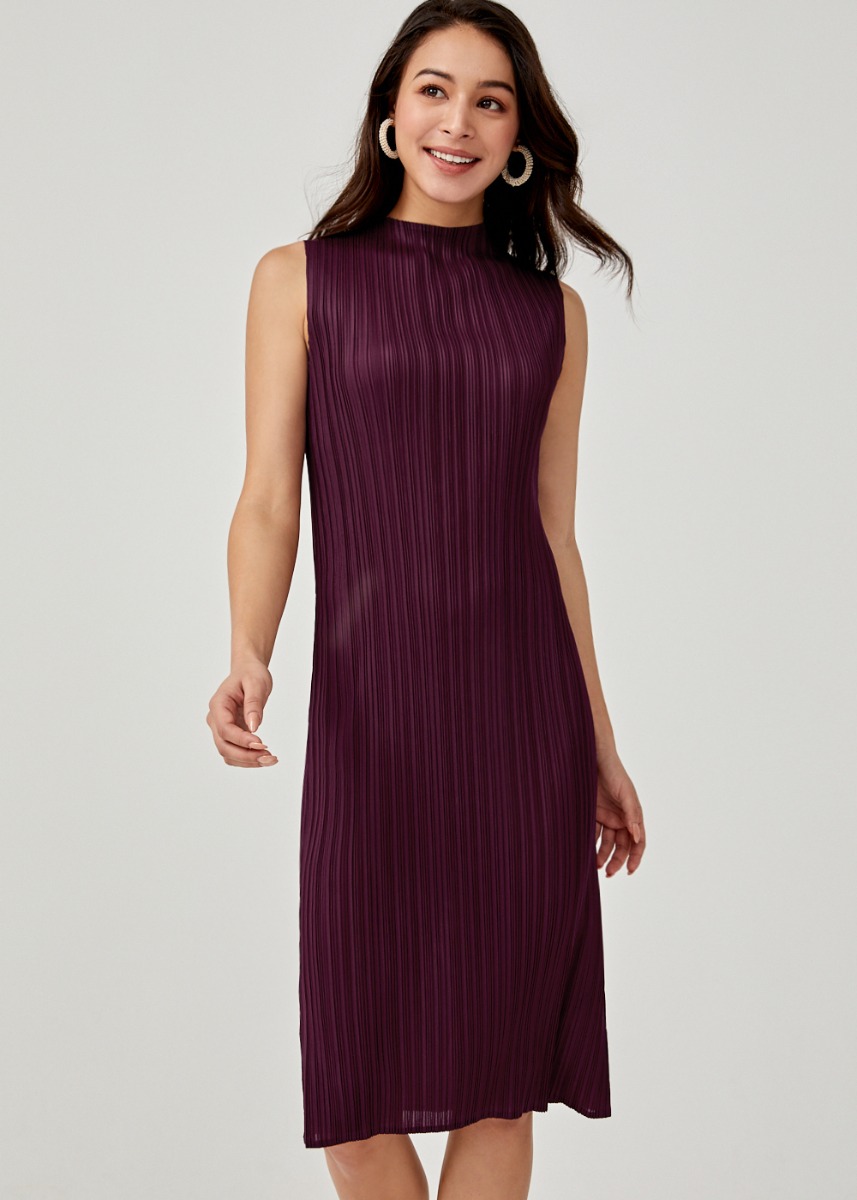 - High neck pleated dress clearance