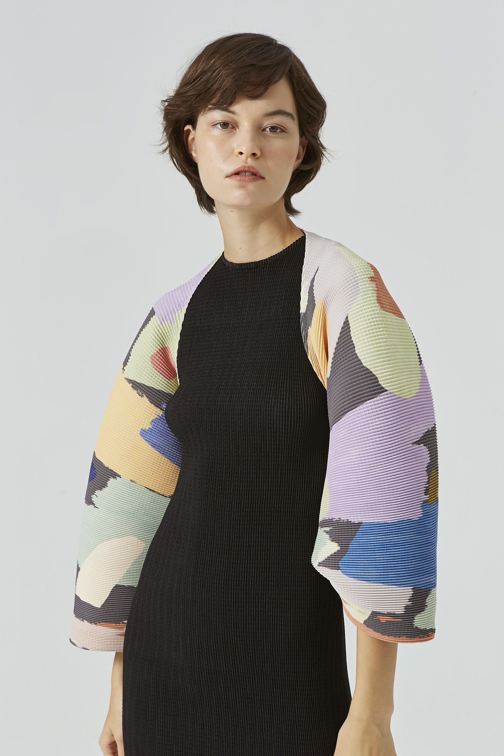 - High neck pleated dress