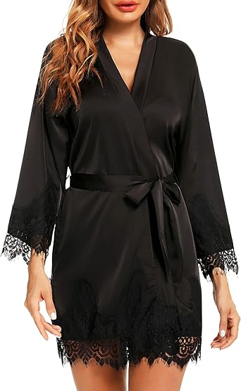 Womens short black dressing gown clearance, Bathrobe Bridesmaid Robes Dressing Gown clearance