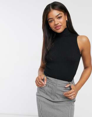 Black sleeveless roll neck top clearance, New Look ribbed knit sleeveless roll clearance