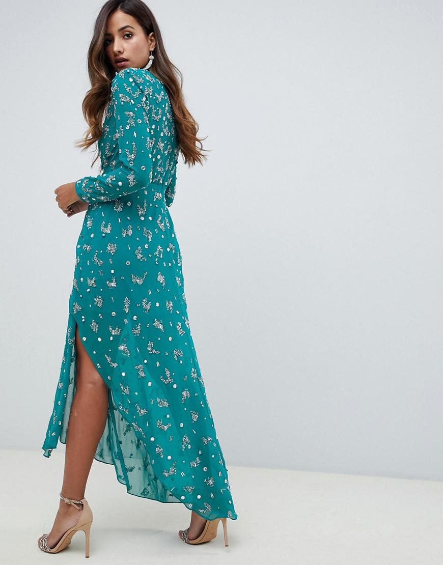 Plunge wrap maxi dress clearance
