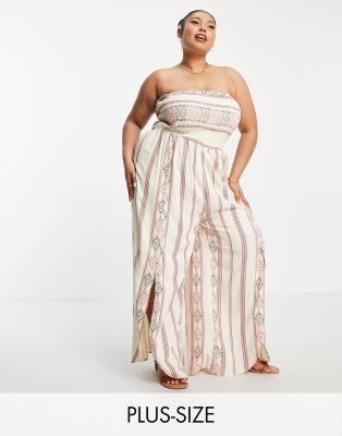 - Cream strapless jumpsuit