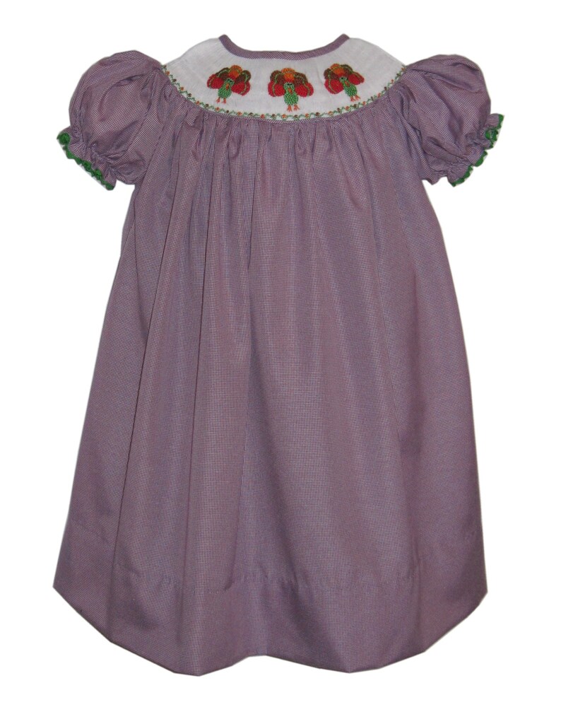 Smocked turkey dress clearance, Hand Smocked Girl's Purple Gingham Checked Turkey Dress | Etsy clearance