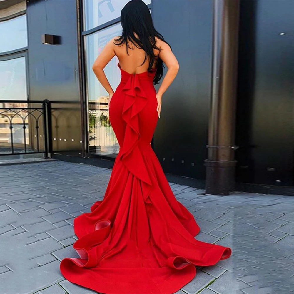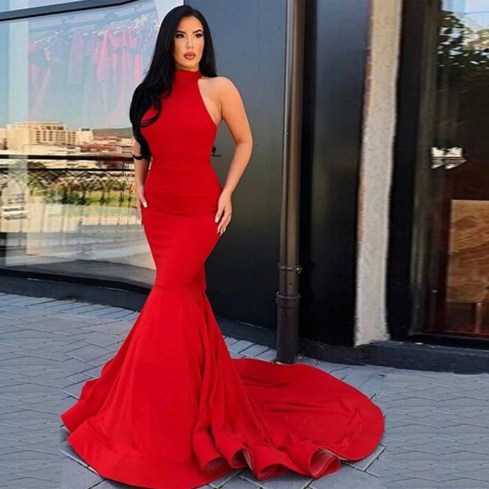 Sexy red plain sleeveless evening dress clearance, Sexy Red Mermaid Evening Dress Halter clearance
