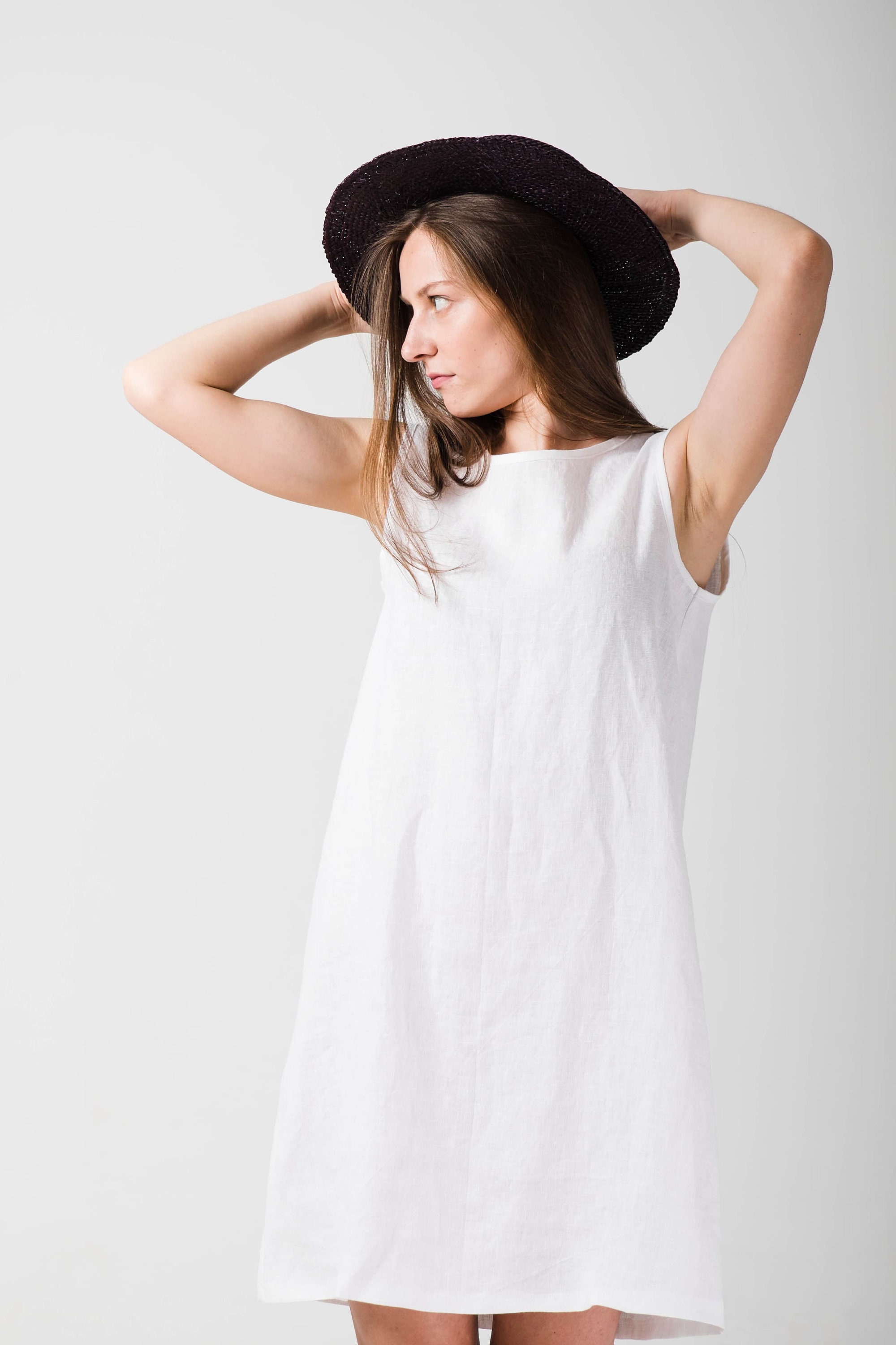 - Cheap White linen a line dress