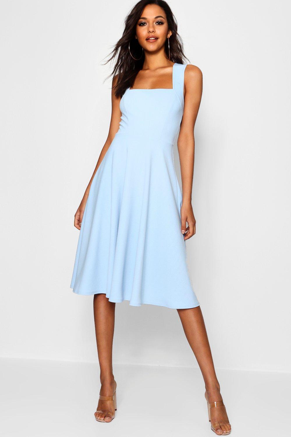 - Blue square neck midi dress clearance