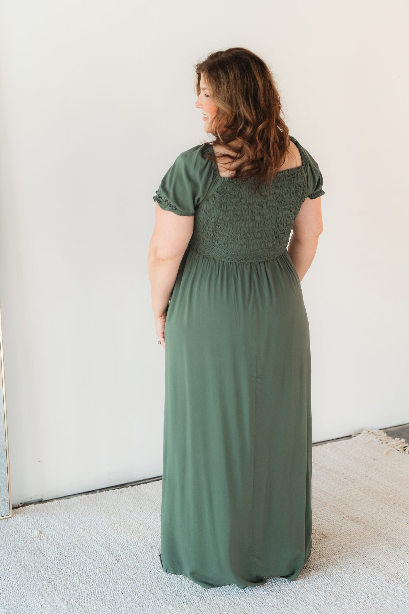 Jolie maxi dress plus size clearance, Dark Green Smocked Maxi Dress with Side clearance