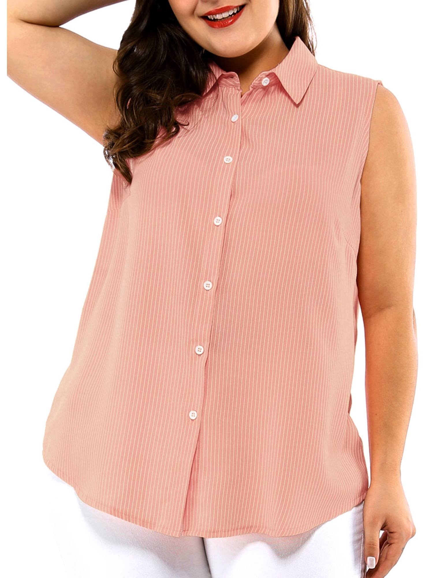 Button down tank top with collar clearance, Agnes Orinda Junior's Plus Striped Sleeveless Button Down Shirts, Women's, Size: 1XL, Pink clearance