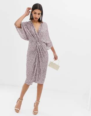 Asos knot dress clearance, ASOS Twist Knot Textured Kimono Midi clearance