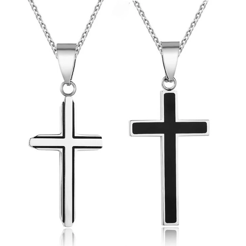 - Mens silver and black cross necklace free shipping