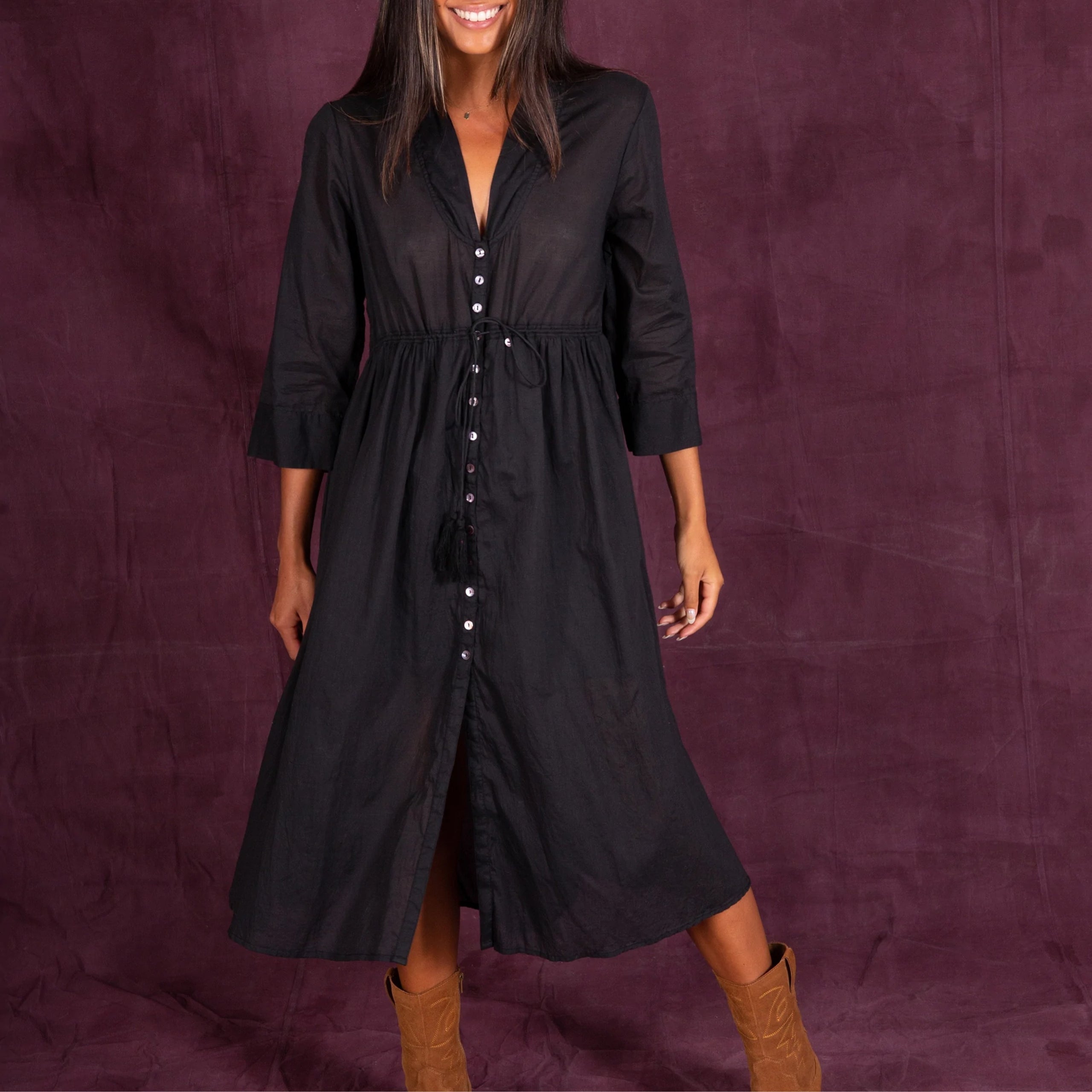 Natural life chloe shirt dress clearance, Chloe Woven Midi Dress - Black – Natural Life clearance