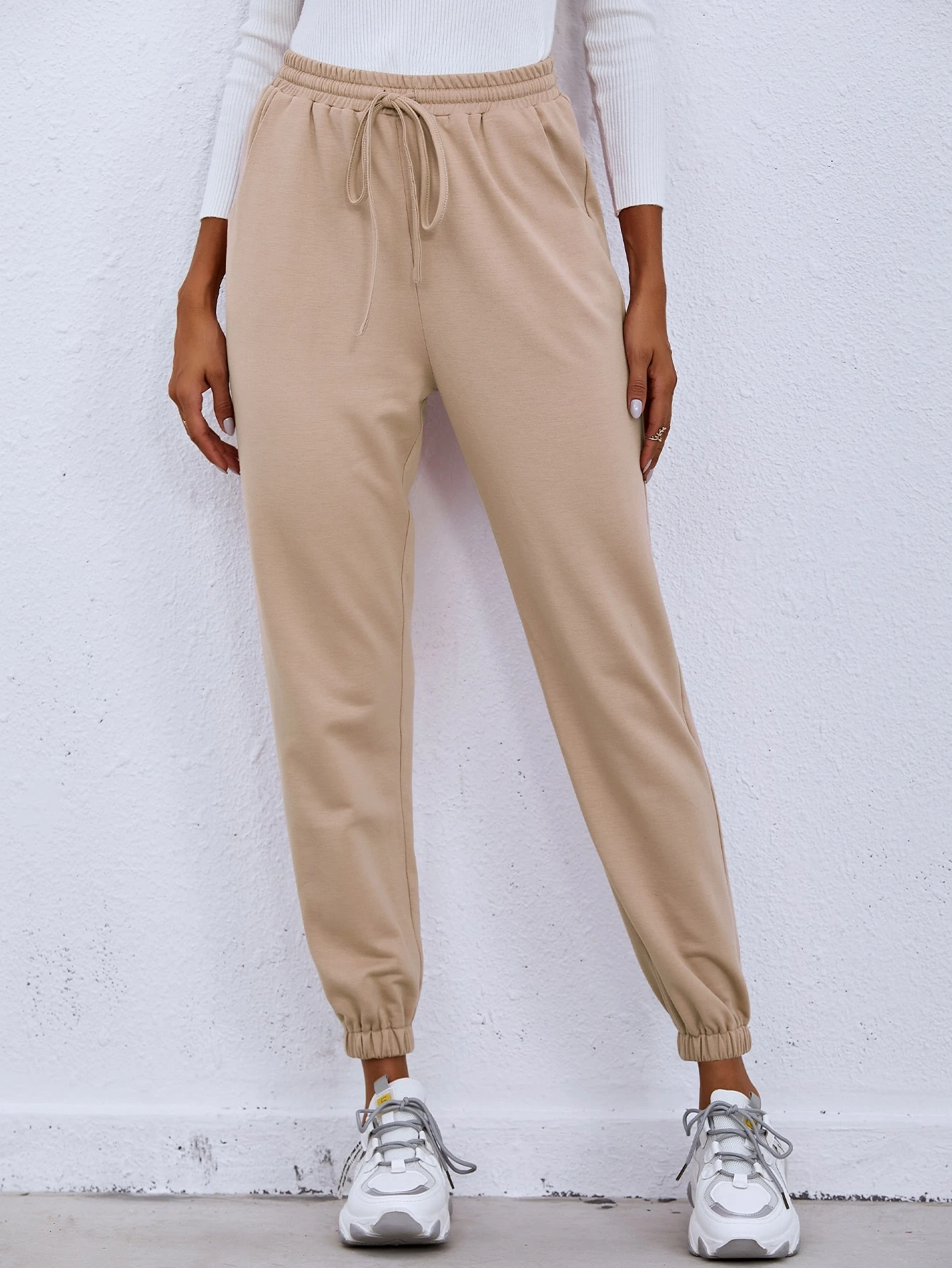 - Cheap Drawstring waist solid sweatpants