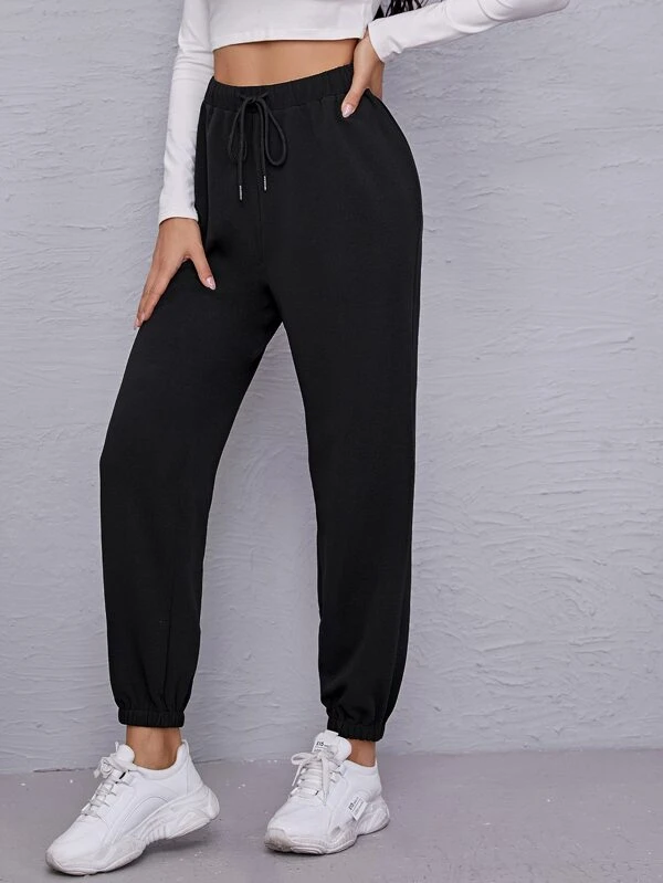 - Drawstring waist solid sweatpants