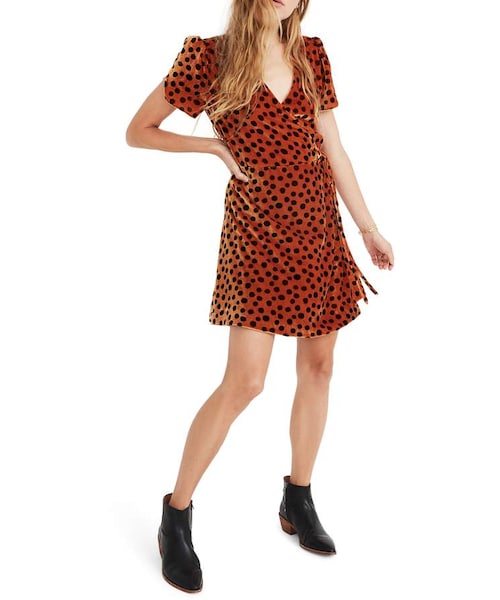 Madewell leopard dress clearance, Madewell Leopard Dot Velvet Wrap Dress clearance