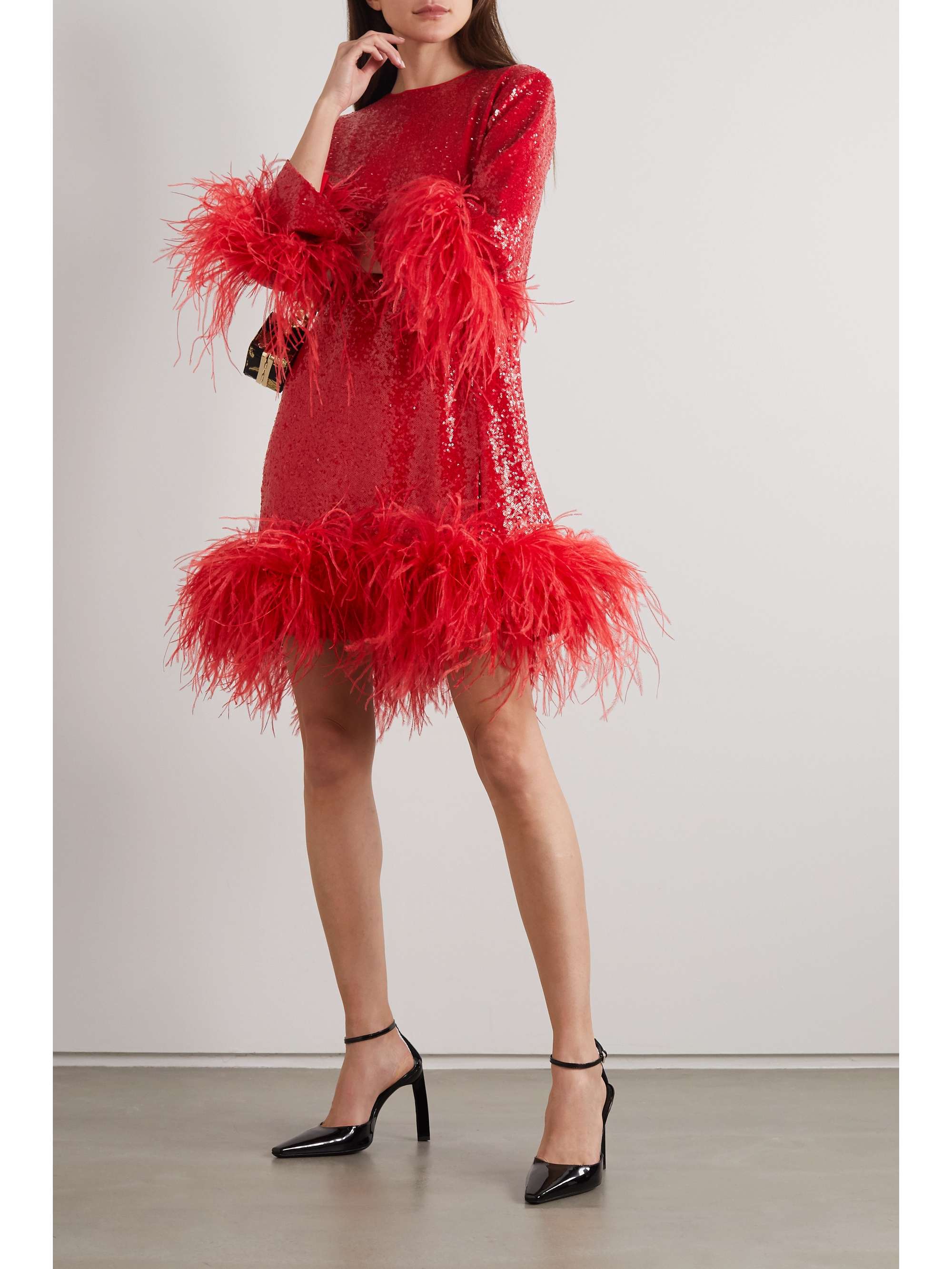 Feather red dress clearance