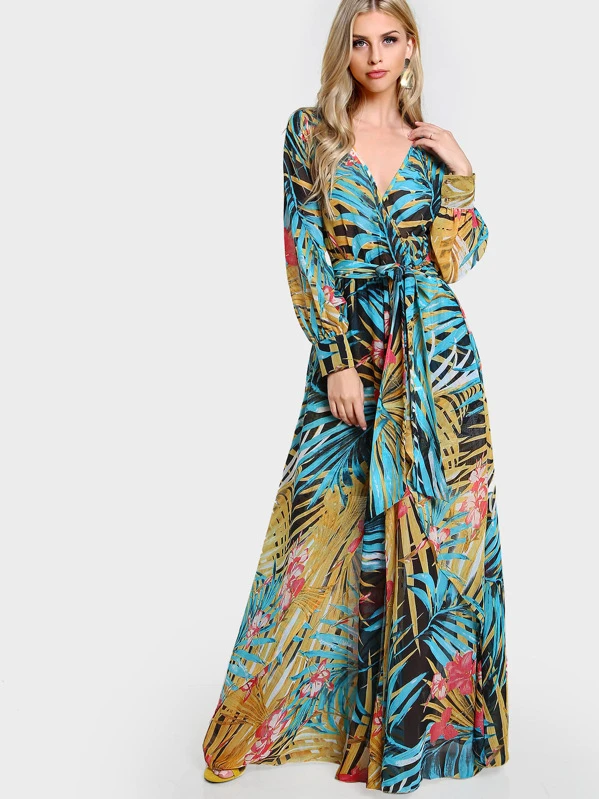- Shopping Long sleeve tropical dress