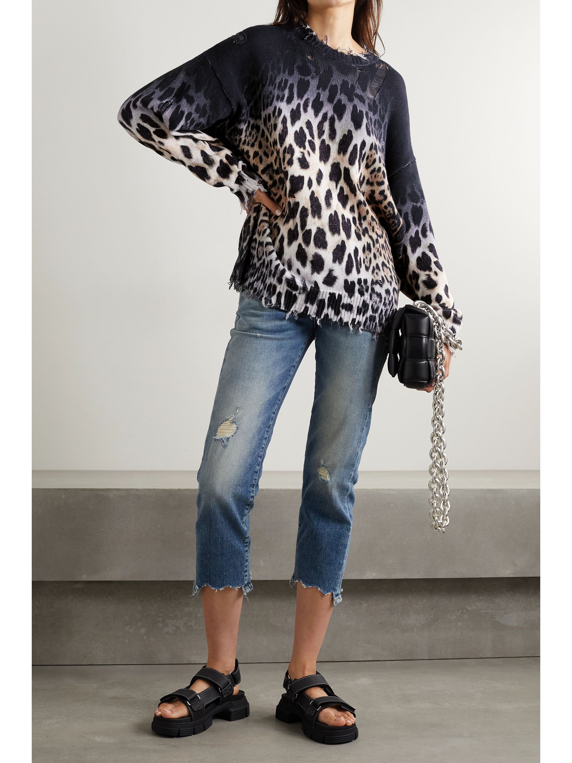 - Distressed leopard sweater shop