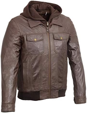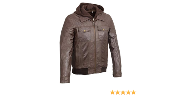 - Wilsons leather sh3353 men's brown leather zipper front bomber jacket with zip off hoodie