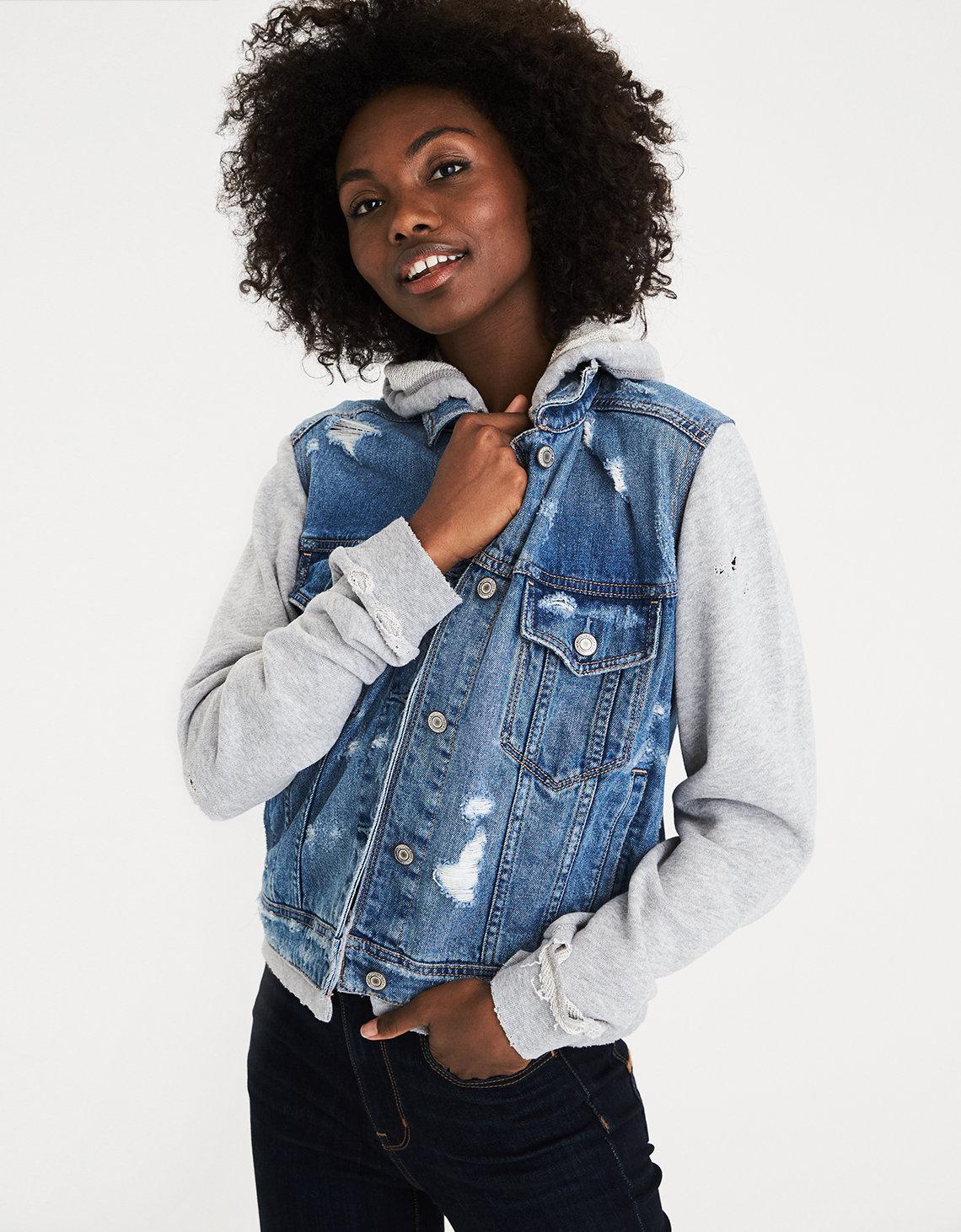 American eagle jean jacket with hood clearance, Denim jacket with hoodie clearance