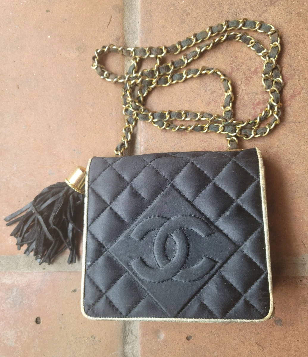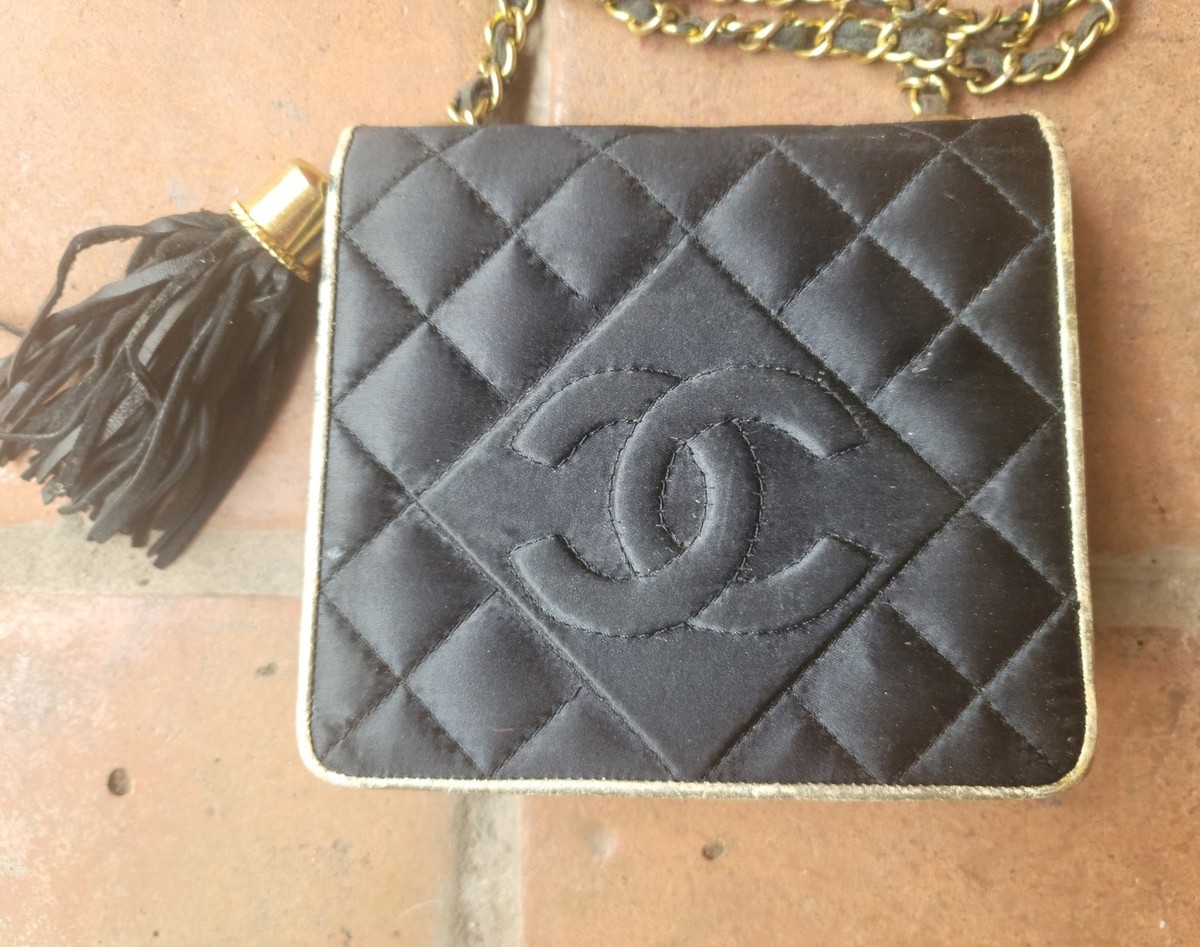 Chanel black satin evening bag clearance, 10 Day SALE Vintage CHANEL Evening Bag Black Satin Quilt purse shoulderbag 80s | eBay clearance