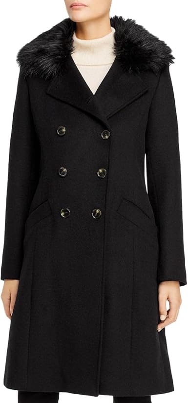 Tahari coats womens clearance, Double Breasted Wool Coat with Faux Fur clearance