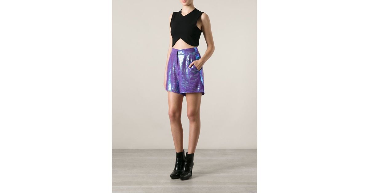 Purple sequin shorts clearance