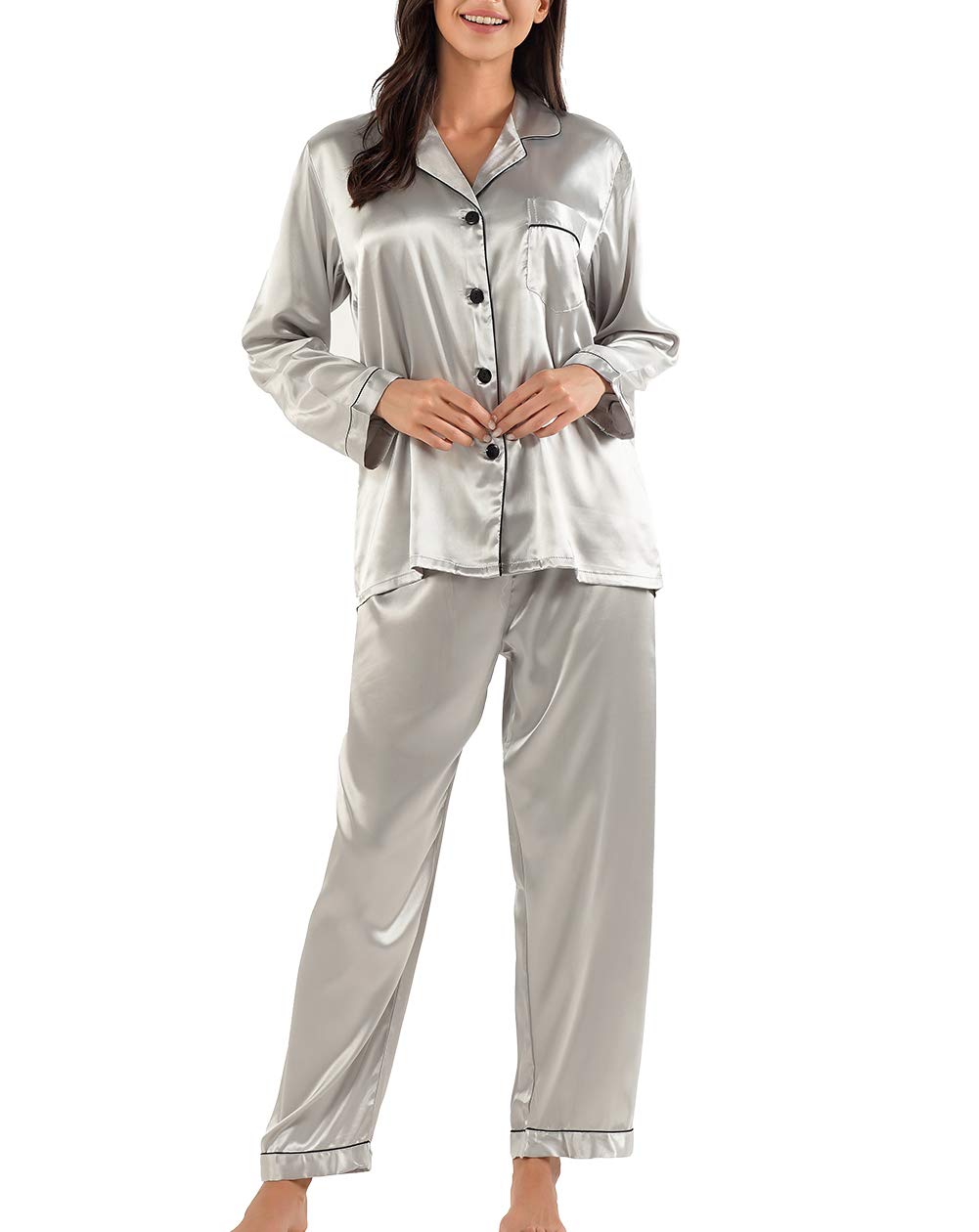 - Women's silk button down pajamas