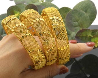 Turkish bangles gold clearance, 4pc/set 24K Real Gold Plated Dubai Wide Bangles Bracelet Cuff Style ,Butterfly Bangles, Turkish Moroccan Jewelry, African Gold Jewelry. clearance