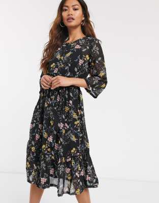 Black chiffon dress midi clearance