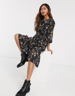 Black chiffon dress midi clearance, Boohoo Chiffon Cold Shoulder Wrap Midi clearance