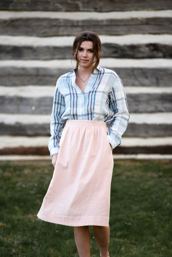 Half midi skirt clearance, Linen Blend Midi Skirt Minimalist Pink clearance