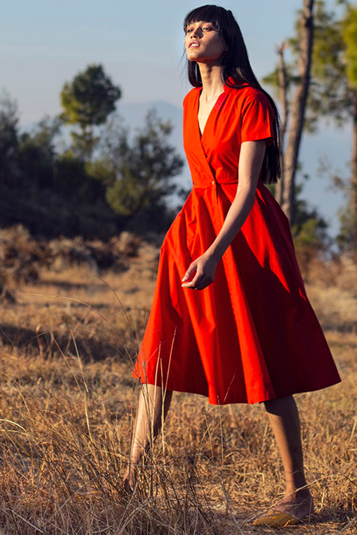 Red poplin dress zara clearance