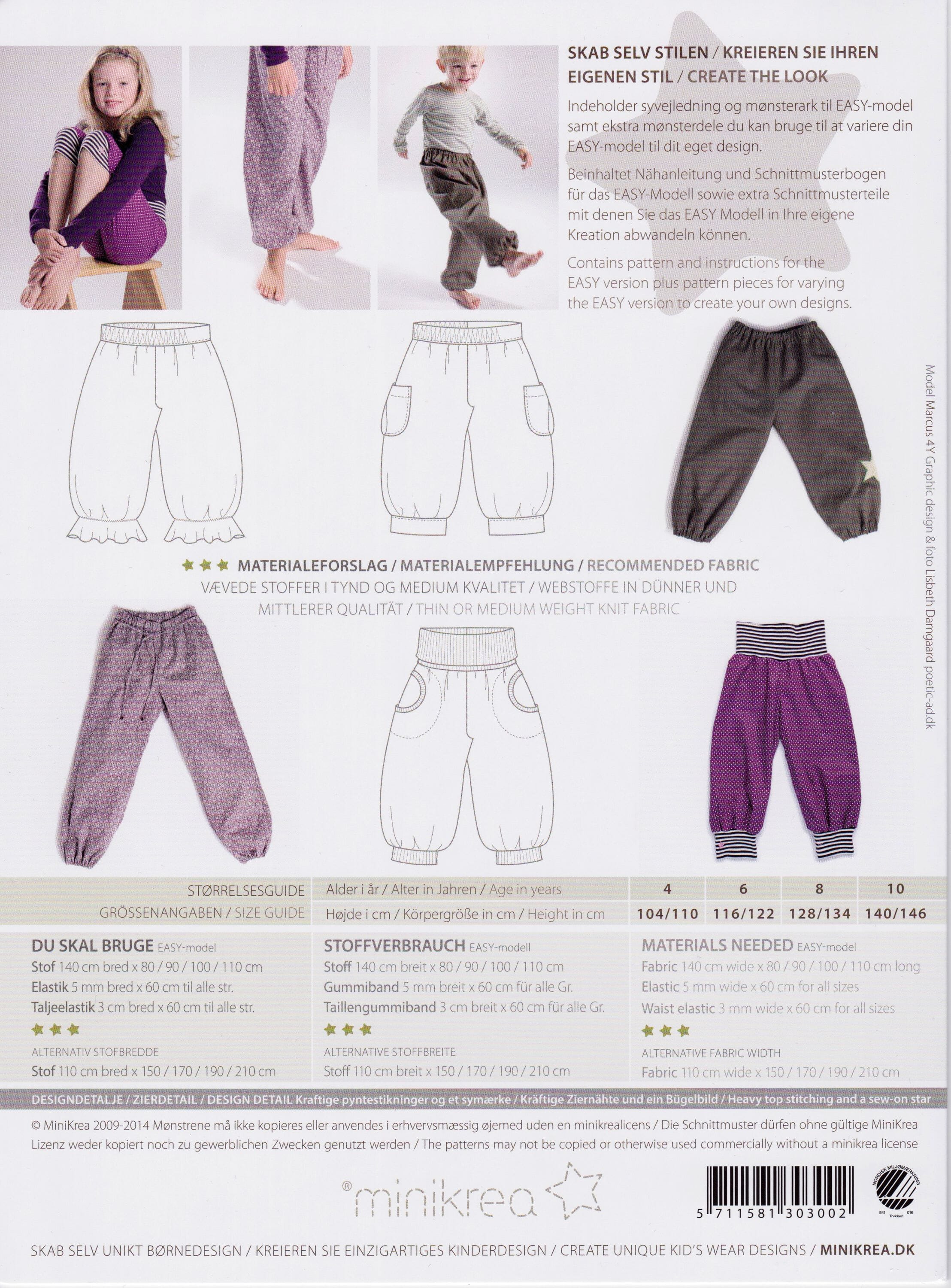 Pumphose 116 schnittmuster clearance, Schnittmuster für die Pumphose 2.0 in den Größen 116-164 clearance
