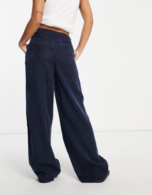 - Petite navy wide leg trousers sale