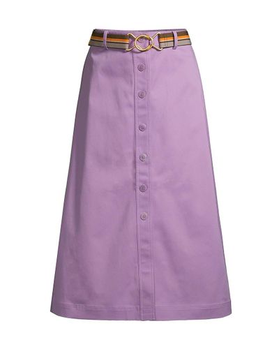 A line button down midi skirt clearance, Tory Burch Cotton A-line Button-front Midi Skirt in Purple - Lyst clearance