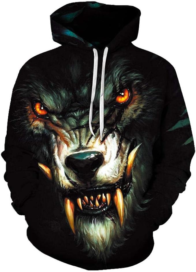 Hoodie wolf clearance, Ice Fire Wolf Cool Pullover Mens Hoodies 3D Print Animal Large Sizes Hooded Sweatshirts For Men clearance
