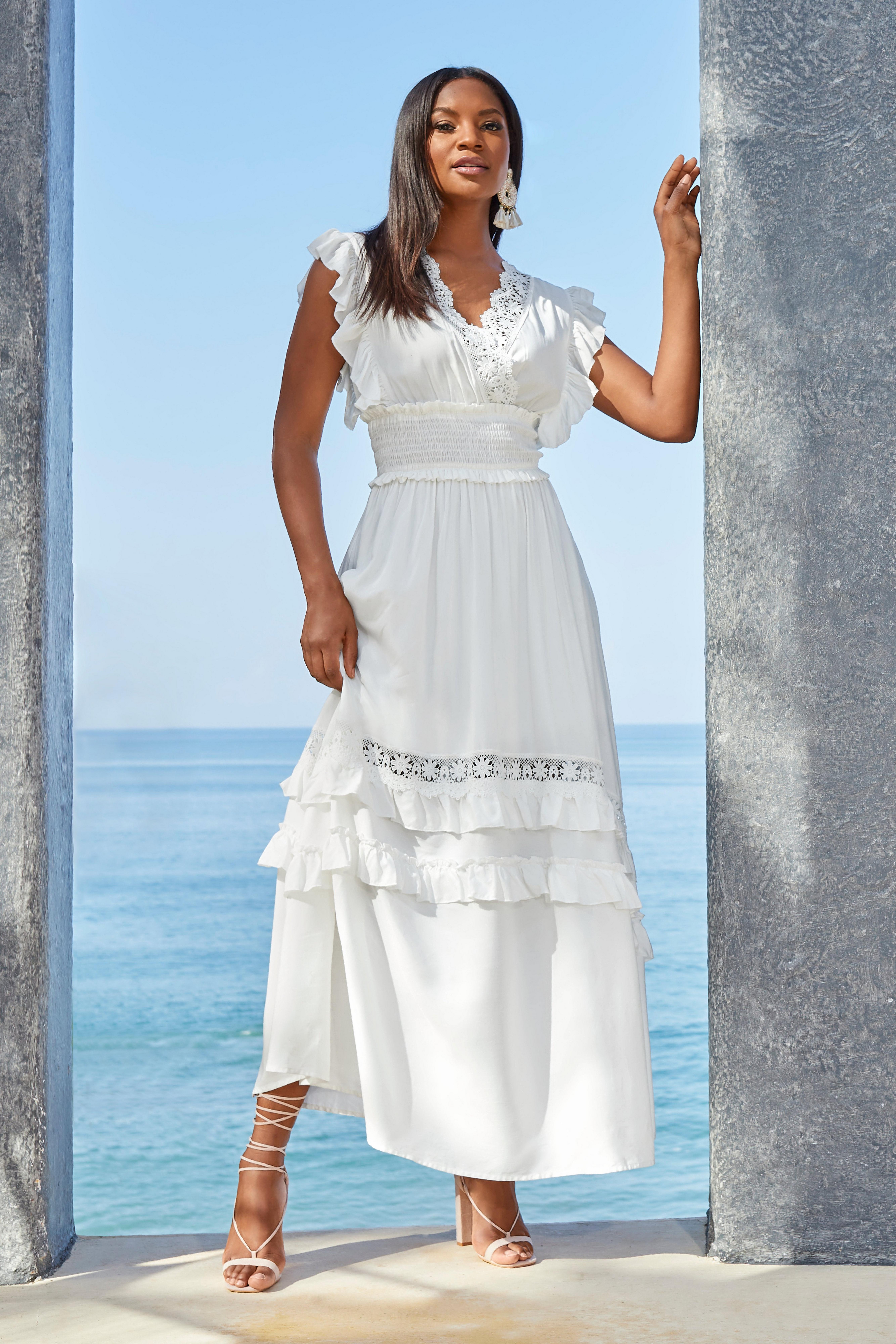 - Ruffle white maxi dress shop
