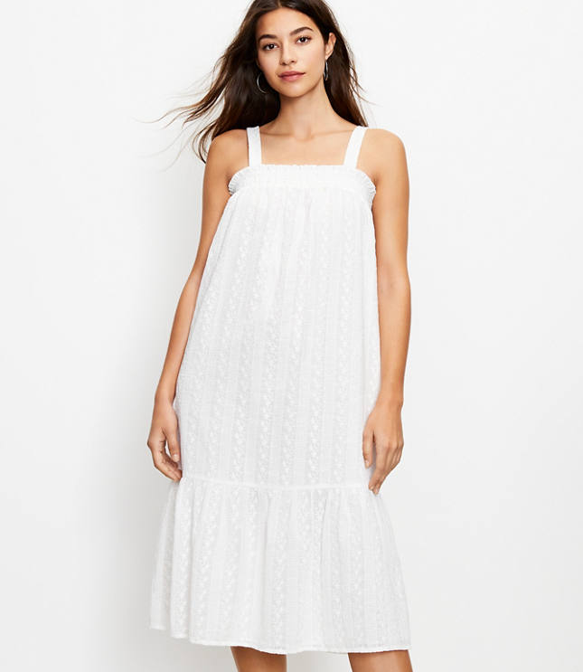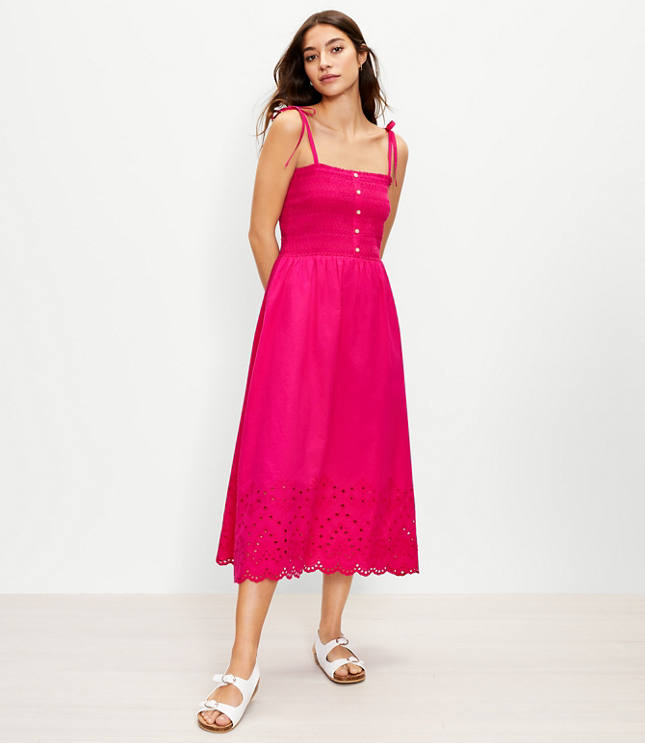 Loft smocked dress clearance, Eyelet Smocked Strappy Midi Dress | LOFT clearance