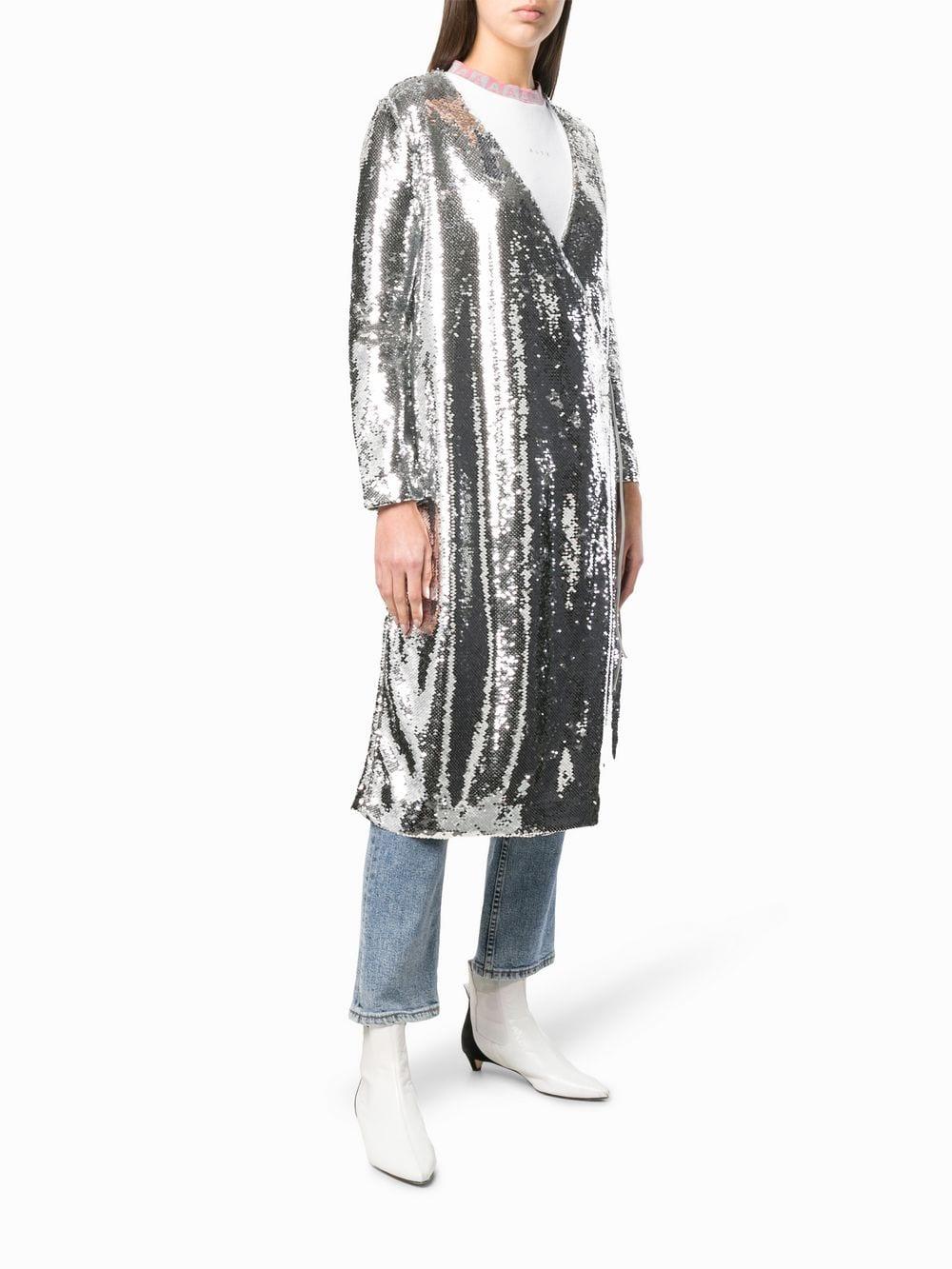 Ganni sonora dress clearance, Silver Sonora sequined tulle midi wrap clearance