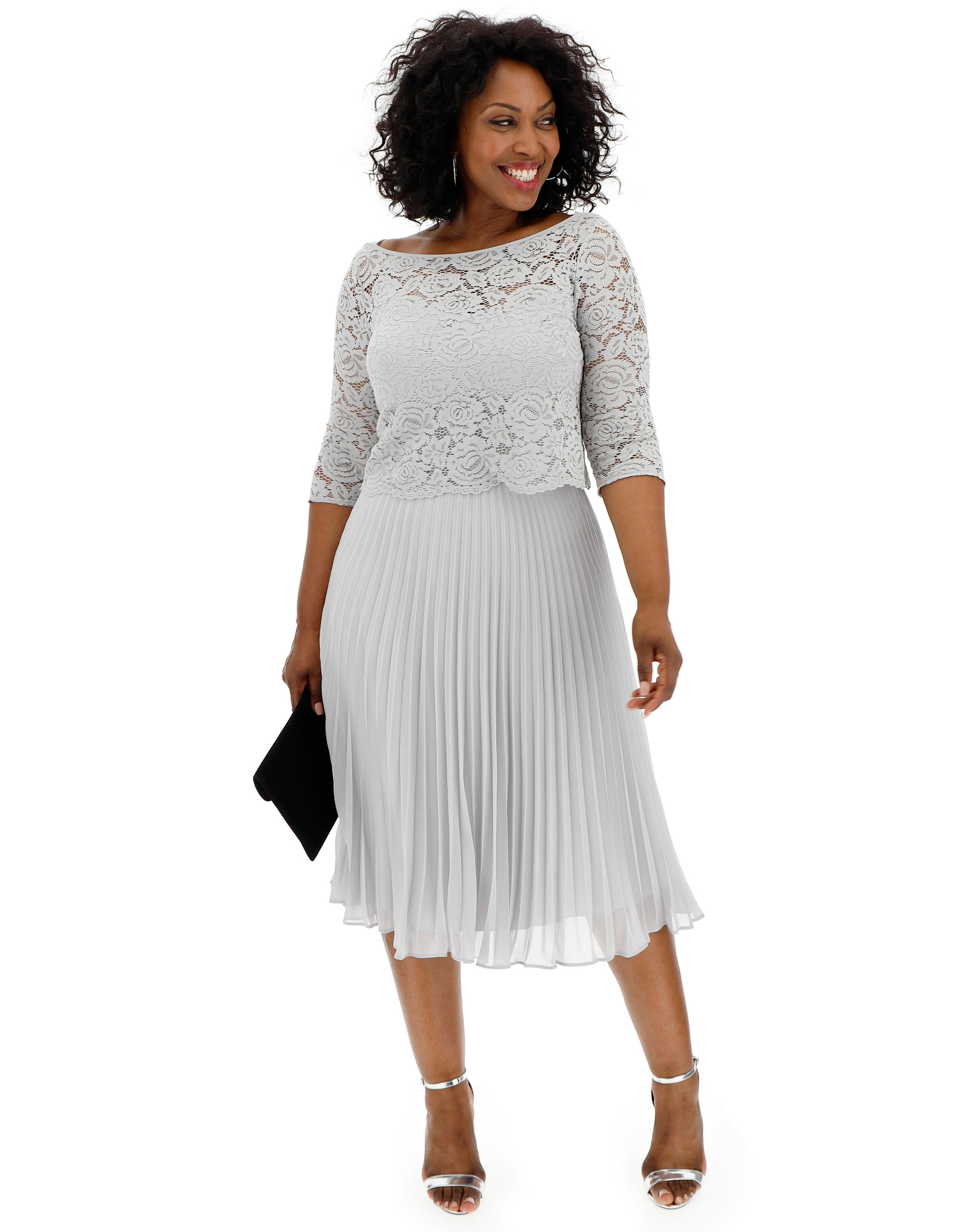 Oasis grey lace top midi dress clearance, Oasis Lace Top Knife Pleat Midi Dress, Grey clearance