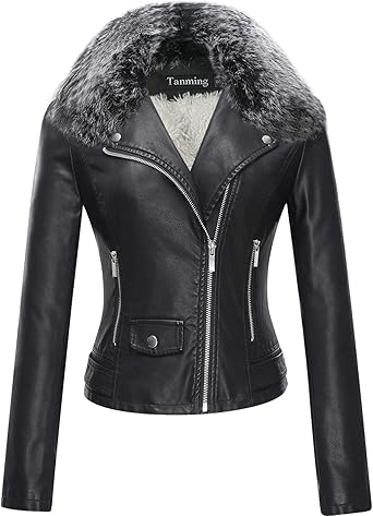 - Fur collar leather jacket womens