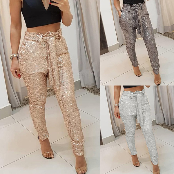 Sparkling trousers clearance, Women Fashion Sequin Bandage Disco clearance