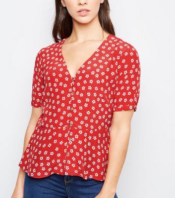 Red button blouse clearance